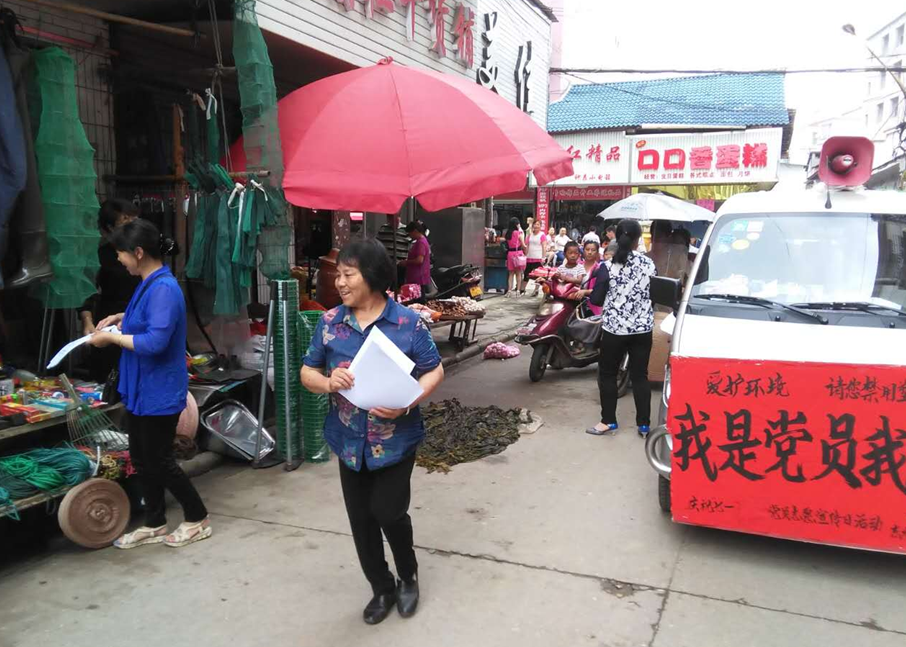 6 月19日 ,长寿镇东北街党支部党员在支部书记凌龙的带领下,深入社区、街道开展城乡环境卫生整治工作志愿宣传活动,向党的95岁生日献礼。是日,该支部党员志愿者出动宣传车,向周边居民、商户发放环保知识宣传资料500余份。下午,该支部同时组织党员对辖区卫生进行了一次全面彻底的清扫,切实做到保护环境从我做起、美化家园“我是党员我带头”。
