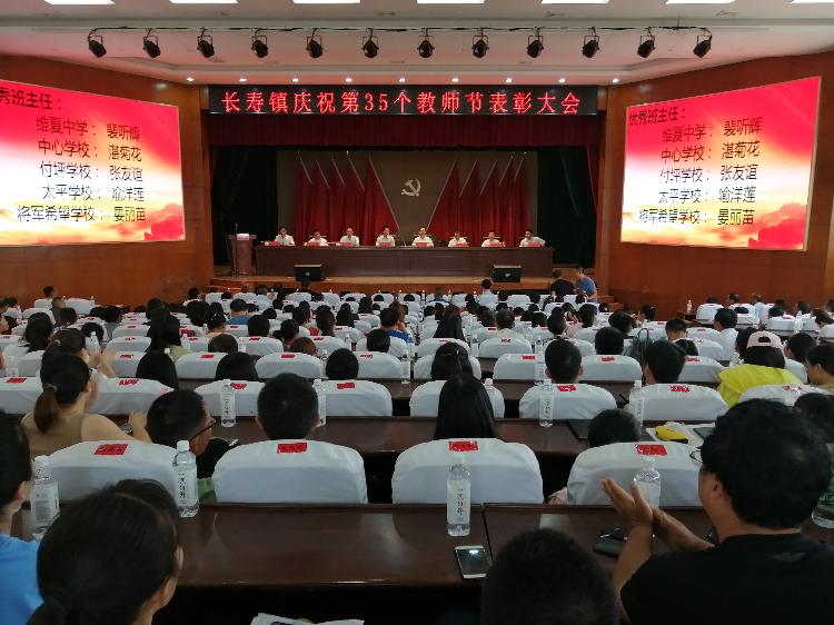 8月30日,我镇召开庆祝第三十五个教师节表彰大会。县纪委派驻教育局纪检组长杨奇、长寿镇相关负责干部、各村(居)支部书记以及学区全体在岗教师、退休教师代表,共500余人参加会议,副镇长杨仁安主持会议。