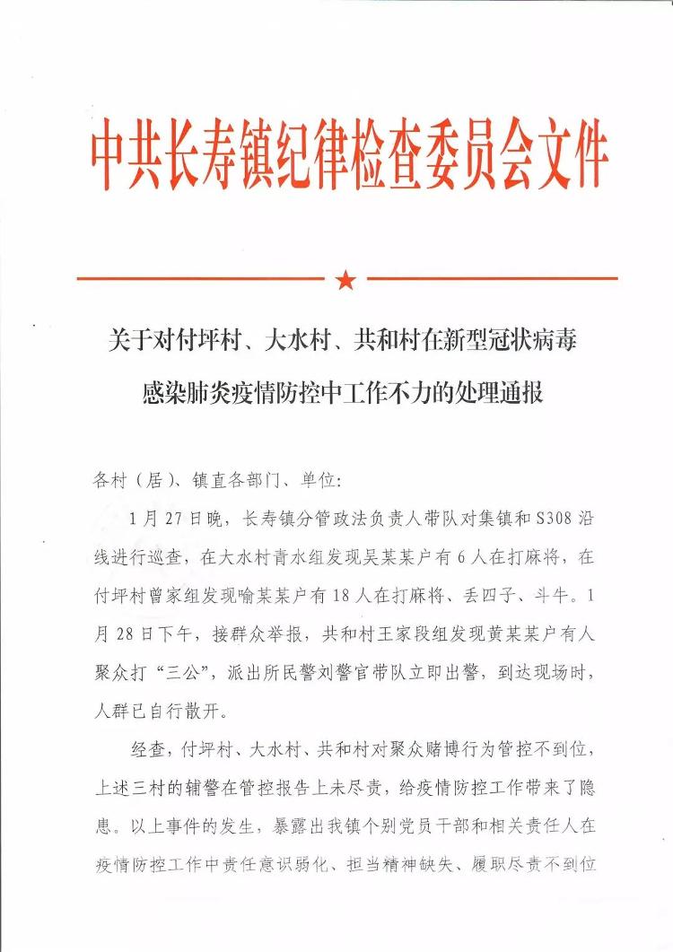 关于对付坪村、大水村、共和村在新型冠状病毒 感染肺炎疫情防控中工作不力的处理通报