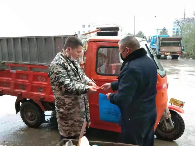 镇突发公共卫生事件应急指挥部对一线环卫工人进行慰问感谢,并为其配好口罩、手套、消毒水等防疫用品。