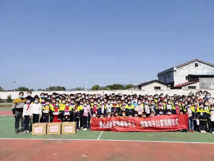 饮水思源,桃李怀恩。4月27日下午,爱心企业家、国付村村民熊建军先生一行向母校国富学校捐赠防疫口罩5000个,奉献爱心助力抗“疫”。一场简单却温暖的捐赠仪式在国富学校篮球场举行。