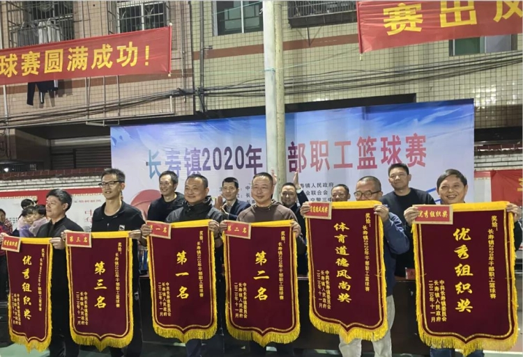 11月6日20点,长寿镇2020年干部职工篮球赛在长寿镇政府机关篮球场落下帷幕,本次篮球赛活动共有六支队伍参加,比赛采取大循环的方式进行,共历时5天15场。最终部门联合代表队、政府机关代表队、平江三中代表队分获冠亚季军,二医院代表队获得体育道德风尚奖、长寿学区代表队和工商联合代表队获得优秀组织奖。