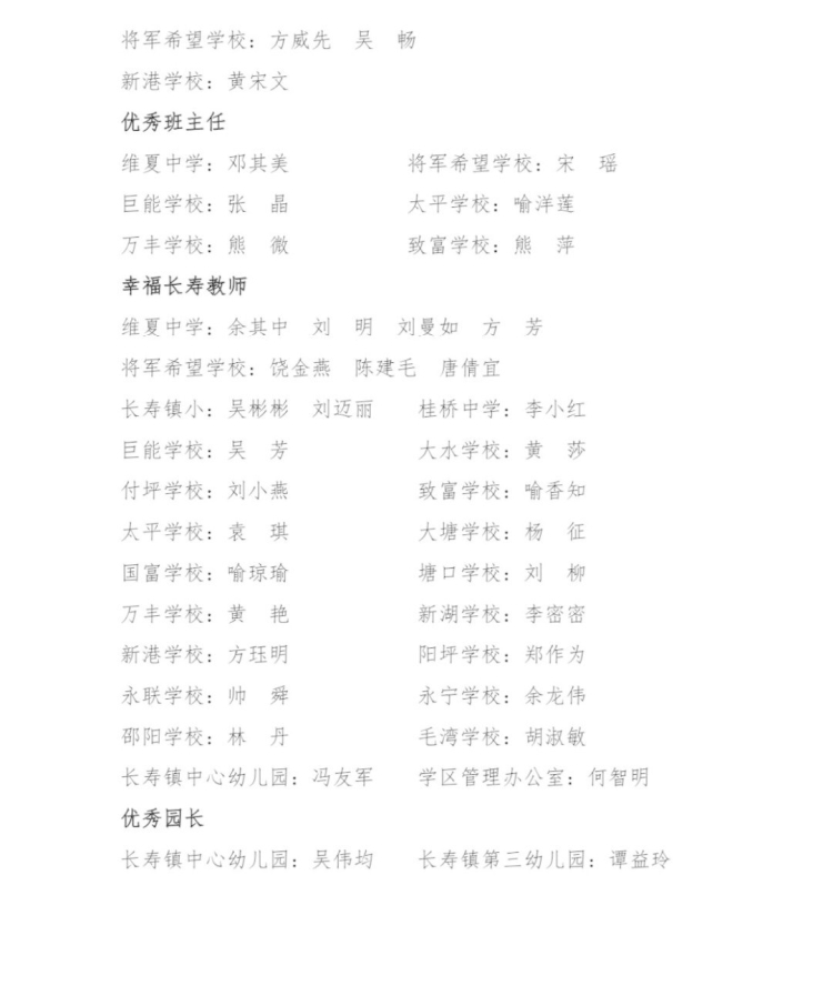 长寿镇第38个教师节表彰名单