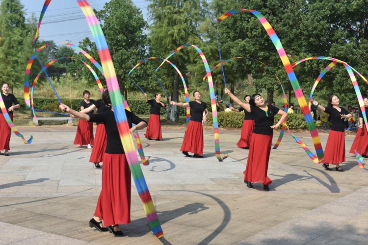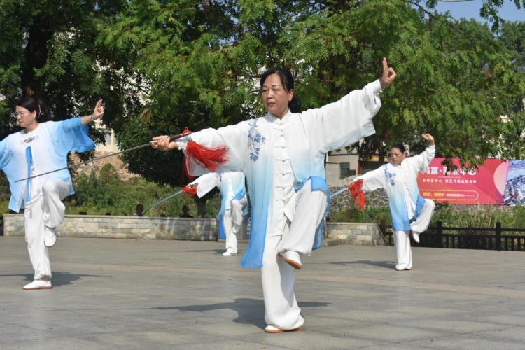 金秋九月微风起,金河广场笑声溢。要问人民幸福否,翩翩舞姿表心意。27日上午,一场别具生面的“长寿镇传统文化艺术表演”快闪活动在金河广场举办,在老干部们沿着广场路线参观游览的时候,太极、扇子舞、丝带舞等六项传统文化艺术表演依次呈现在众人面前,一招一式间尽显长寿幸福。