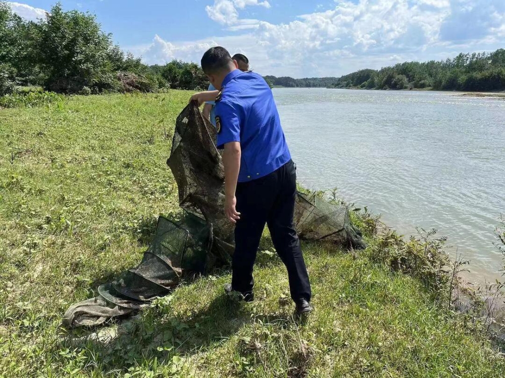 三是强化巡查打击。镇村两级河长和综合执法大队严格落实巡河工作,重点巡查打击向河边乱倒建筑渣土和其他生活垃圾、非法采砂洗砂、乱排生产生活污水、电毒炸鱼、串网地笼禁用渔具下河捕捞或在河道界线管理保护范围内乱搭乱建等违法违规行为,今年以来收缴销毁渔具60余套,串网地笼100余付,拆除乱搭乱建2处。