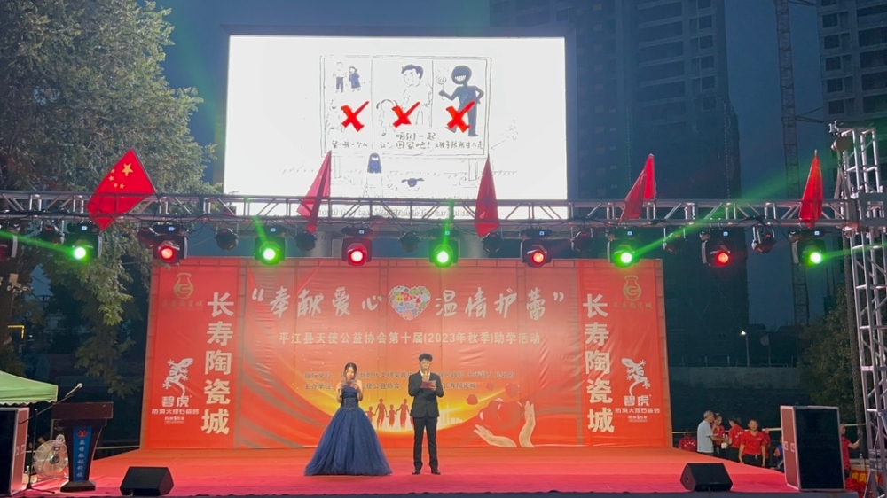 8月20日晚,长寿镇金河广场人声鼎沸、热火朝天,上千名群众聚集在这里,共同参加长寿镇“奉献爱心·温情护蕾”暨平江县天使公益协会第十届(2023年秋季)助学活动。此次活动由平江县新时代文明实践中心、平江县民政局、长寿镇人民政府指导,平江县天使公益协会主办。
