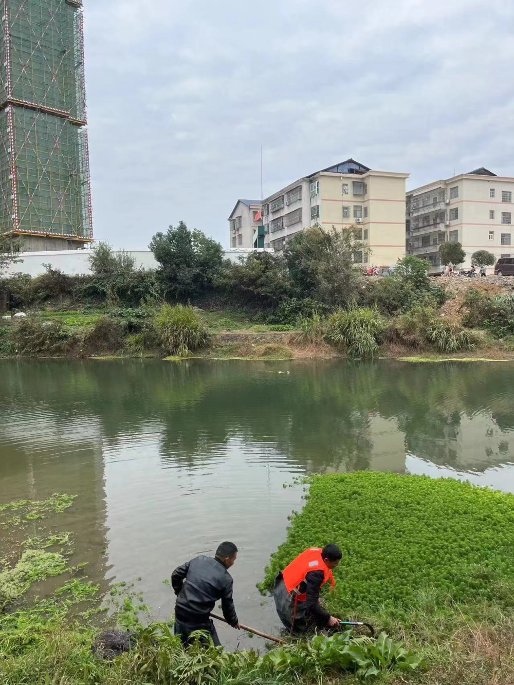 11月29日,长寿镇河长办组织专业打捞队对辖区内河道中堆积的水藻水草和漂浮物进行打捞清理,确保水质达标、水面干净。