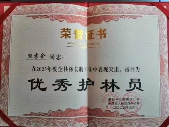 无私奉献,绿满山河。熊孝经同志多年如一日,用他的勤奋、无私、廉洁书写了绿色的篇章。在他的辛勤付出下,大黄村森林火灾事故为零,森林病虫害得到了有效控制,森林覆盖率逐年上升。他用一颗生态忠诚之心,守护着一方绿水青山,为建设美丽长寿贡献了自己的力量。( 严学平 )