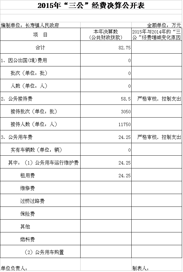 平江县长寿镇2015年三公经费决算公开