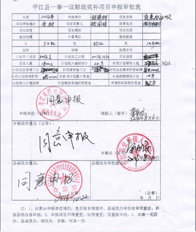 朗溪村一事一议申报审批表