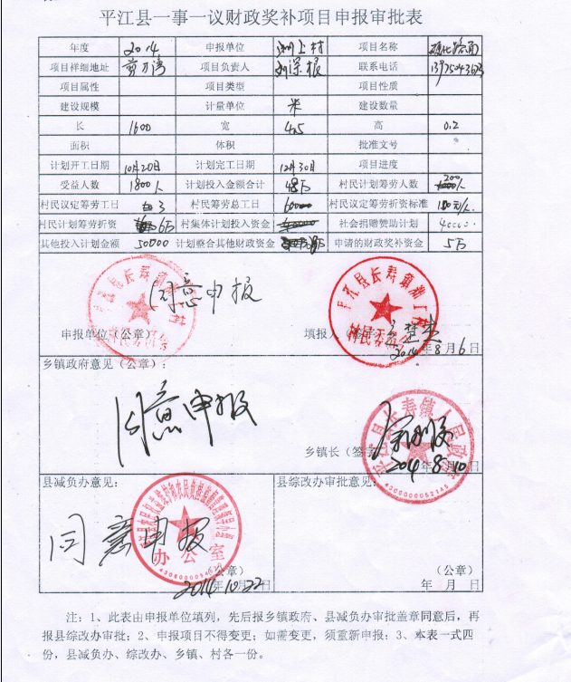 洲上村一事一议申报审批表