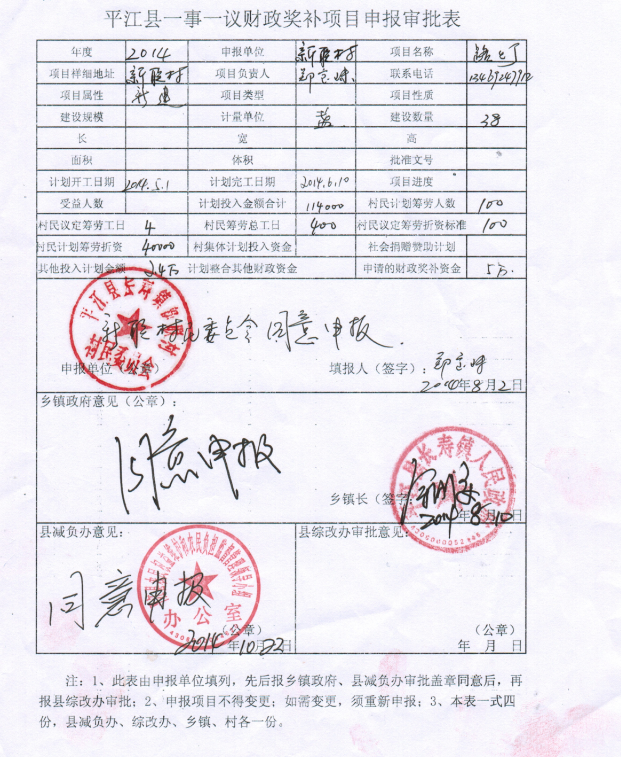 新联村一事一议申报审批表
