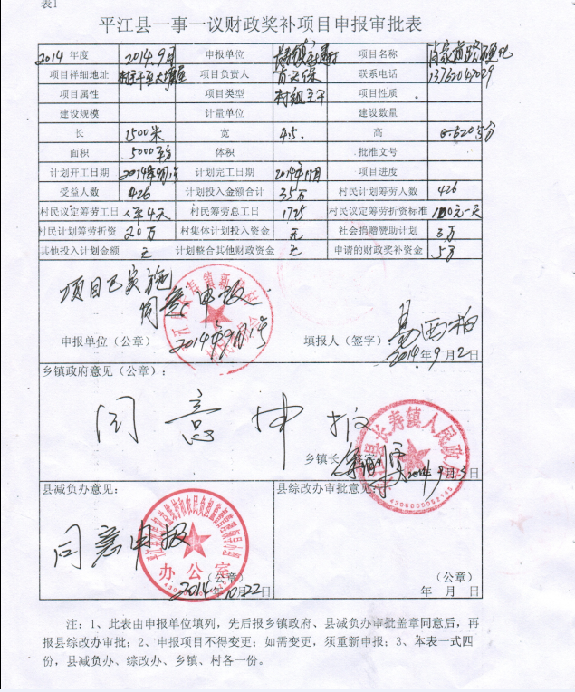 新建村一事一议申报审批表