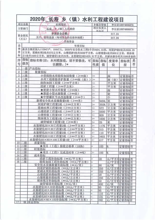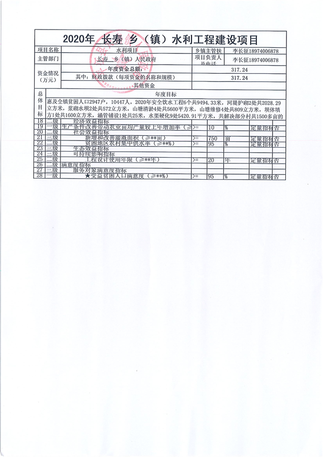 长寿镇2020年统筹整合涉农资金项目库预算绩效申报