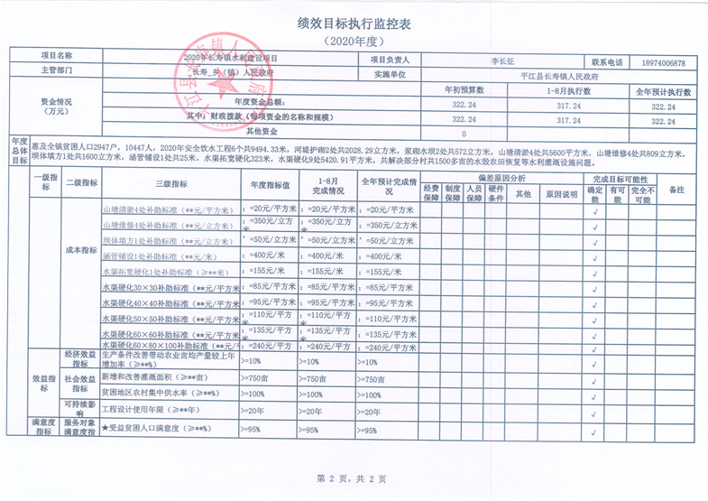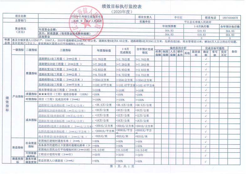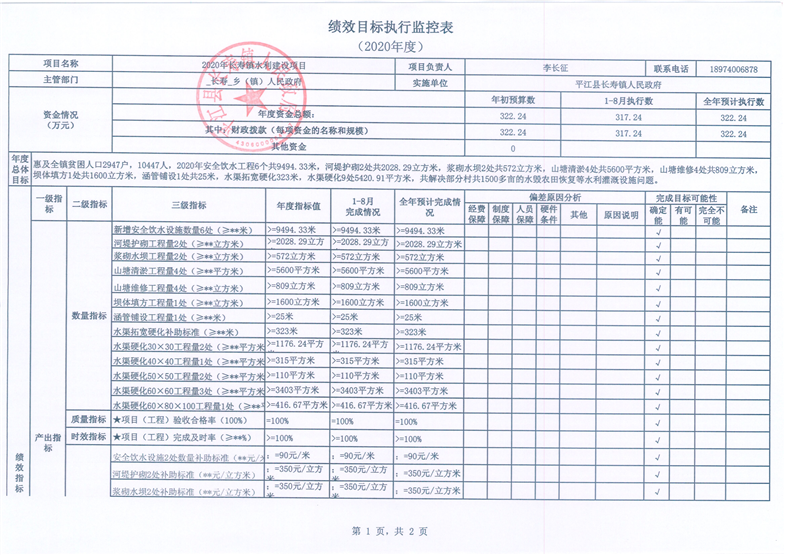 长寿镇2020年度统筹整合涉农资金项目库预算绩效监控