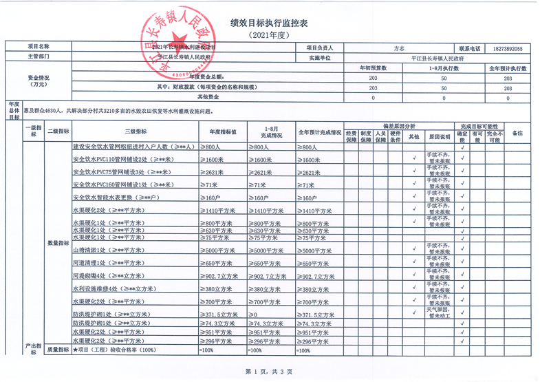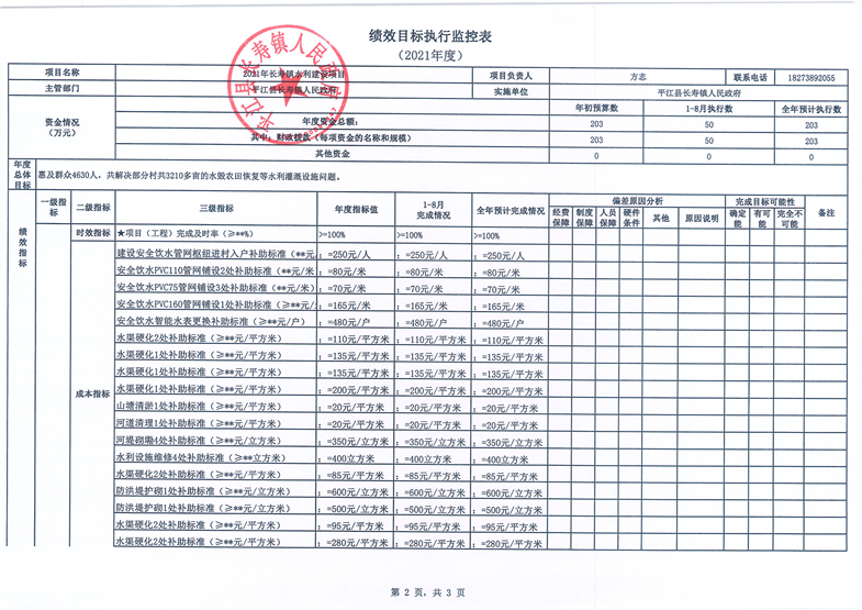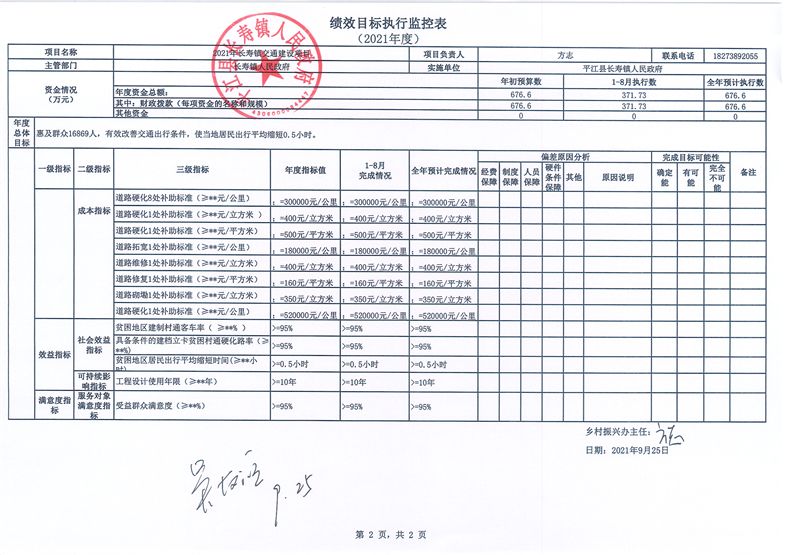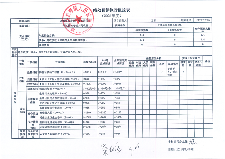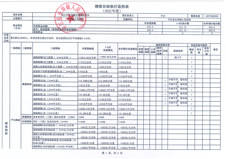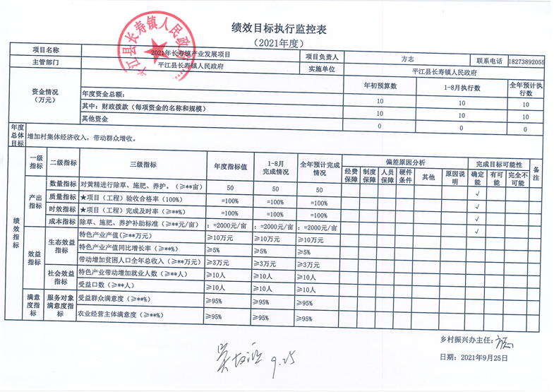 2021年长寿镇乡村振兴统筹整合项目资金绩效监控公示