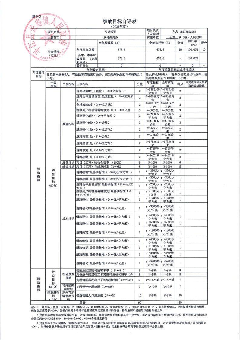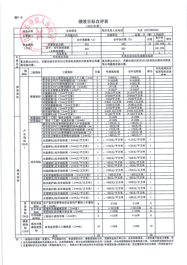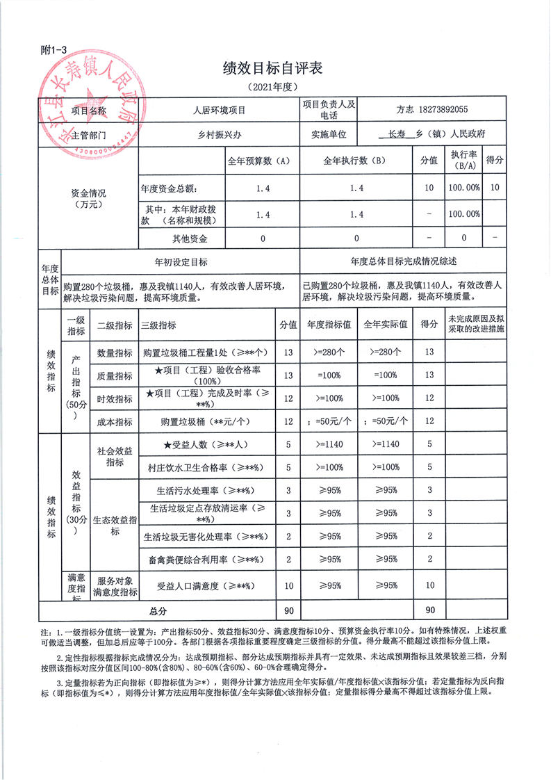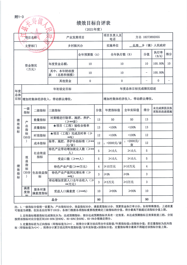 长寿镇2021年乡村振兴资金项目绩效目标自评表