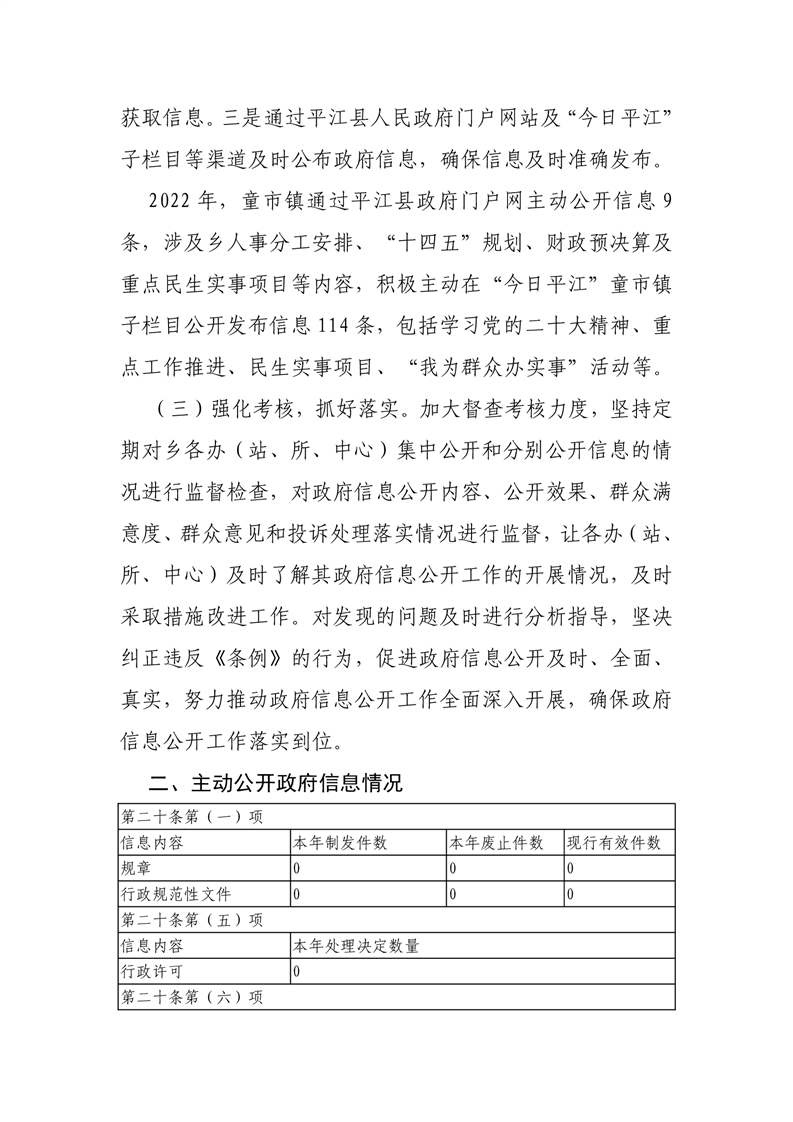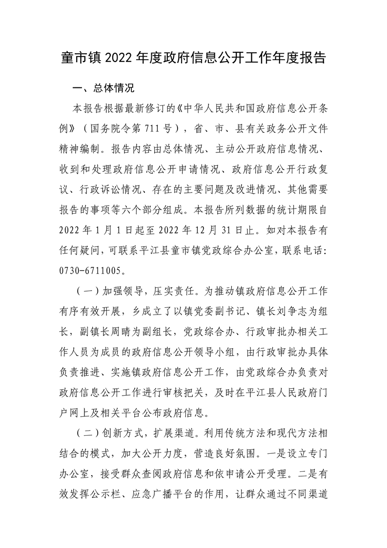 平江县童市镇2022年政府信息公开工作年度报告