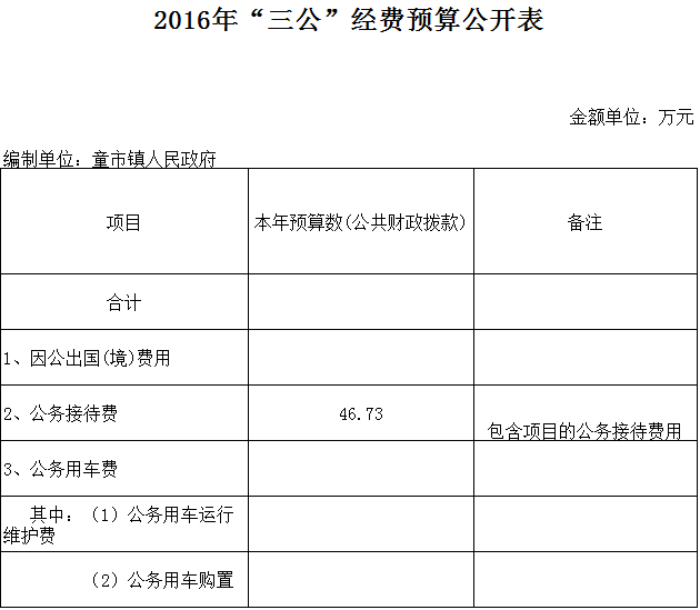 平江县童市镇2016年三公金费预算公开表