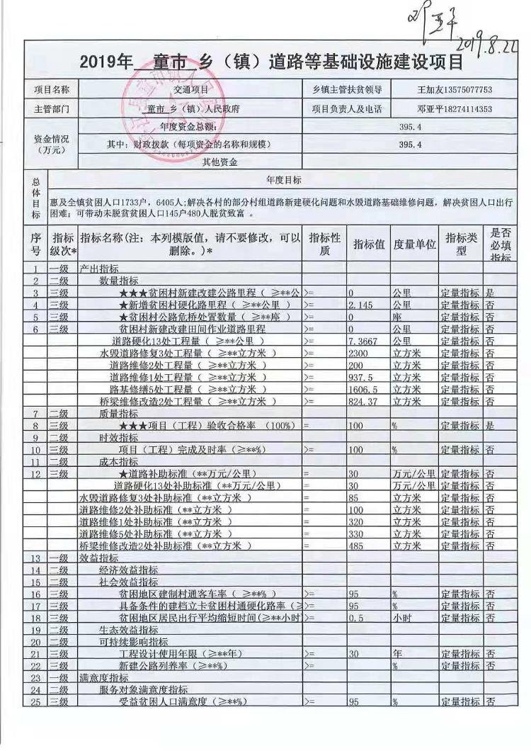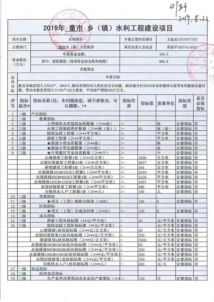 童市镇2019年统筹整合涉农资金项目库预算绩效申报
