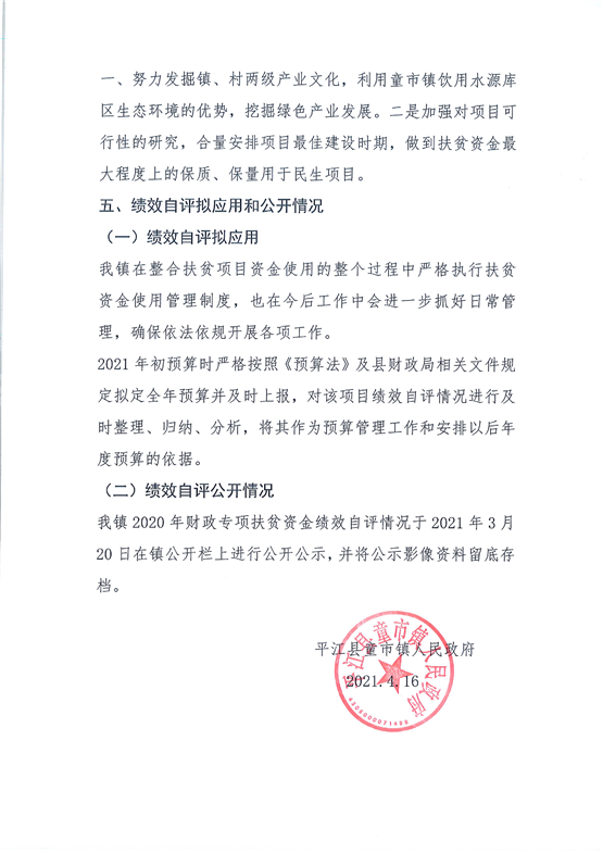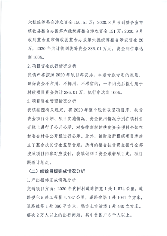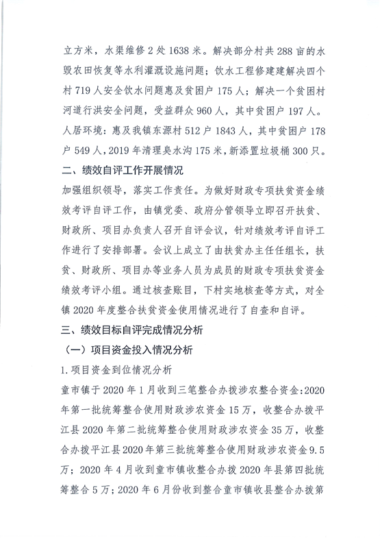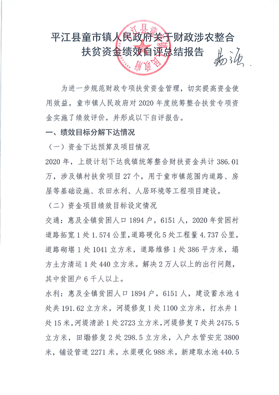 平江县童市镇人民政府关于财政涉农整合扶贫资金绩效自评总结报告
