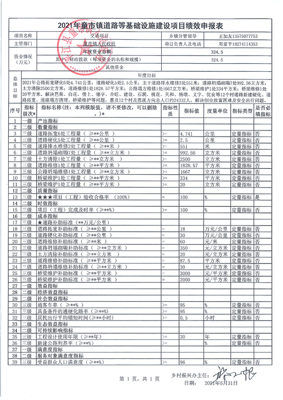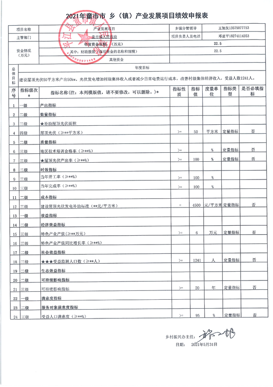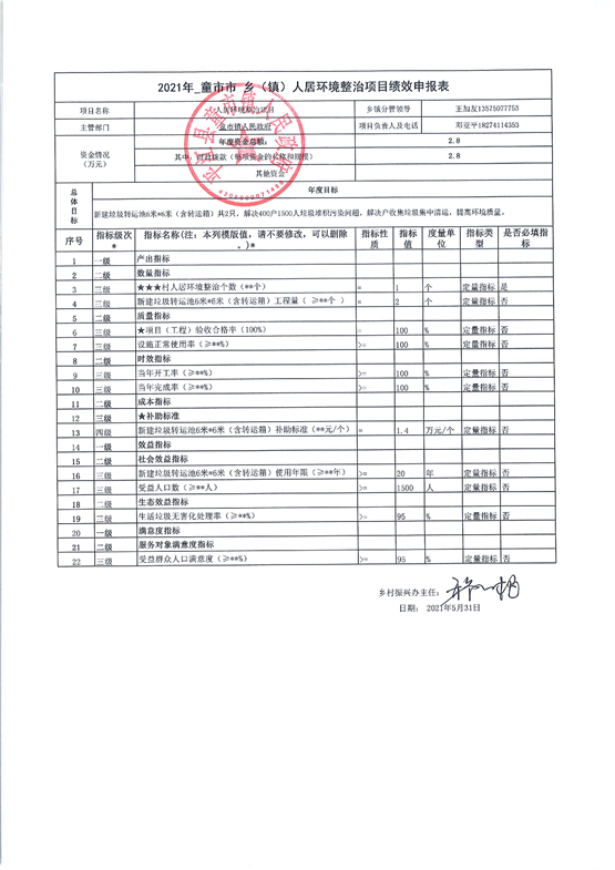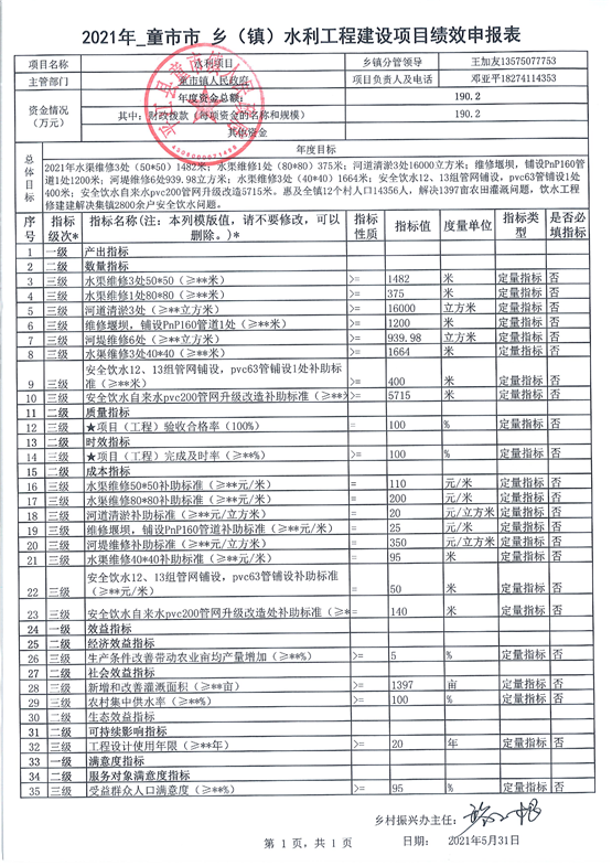 童市镇2021年度统筹整合使用财政涉农资金项目库绩效申报