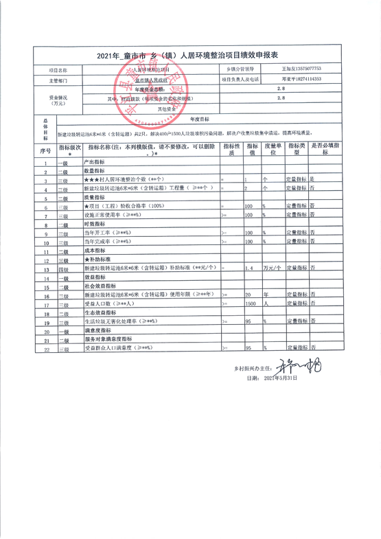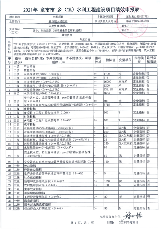 童市镇2021年度统筹整合使用财政涉农资金项目库绩效申报.