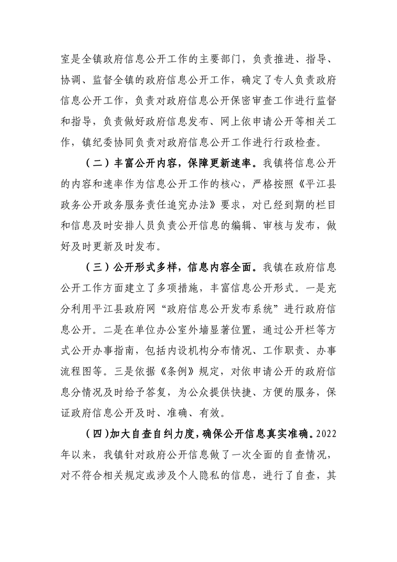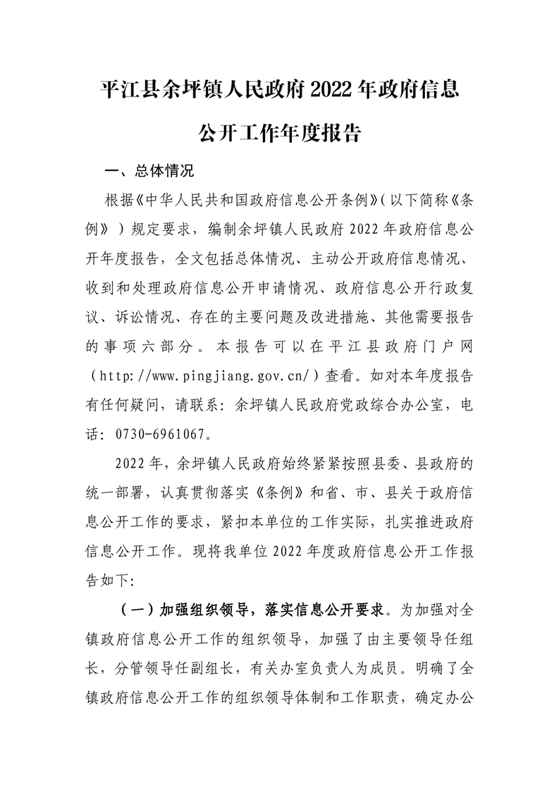 平江县余坪镇人民政府2022年政府信息公开工作年度报告