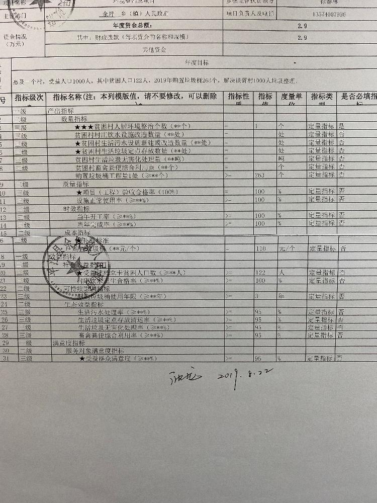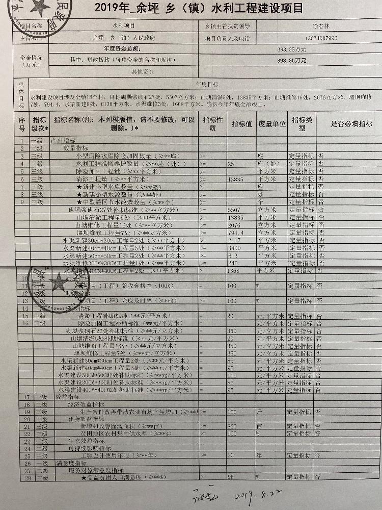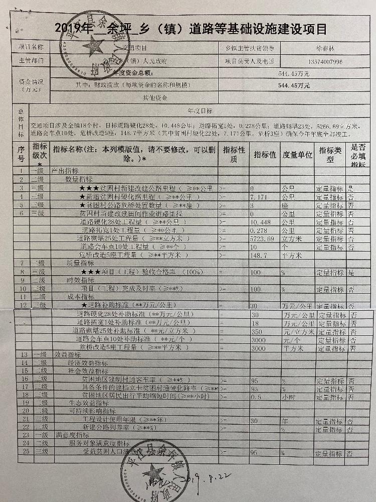 余坪镇2019年统筹整合涉农资金项目库预算绩效申报