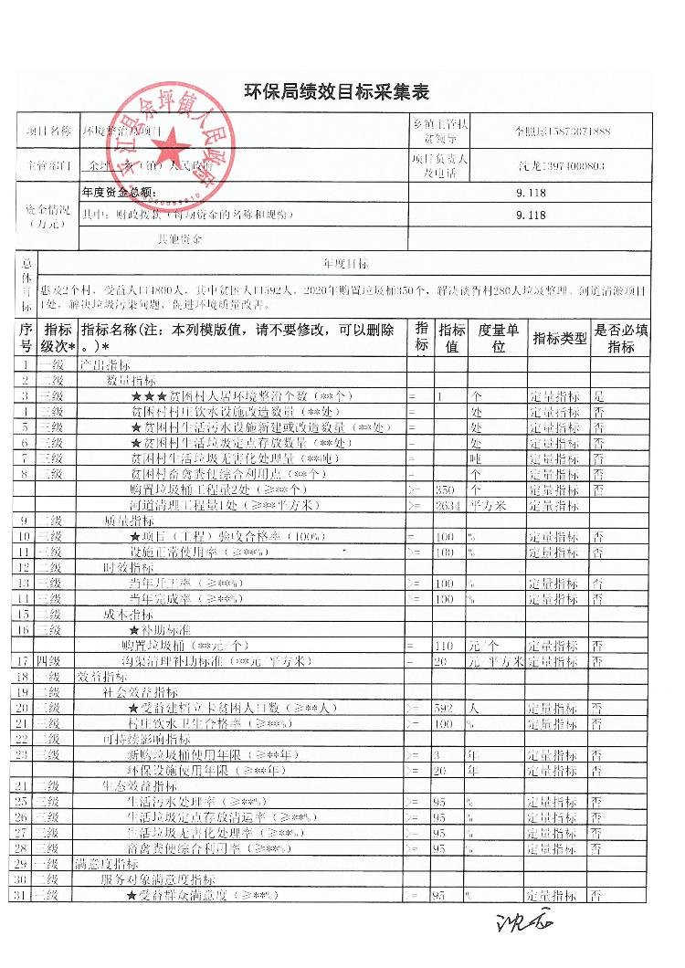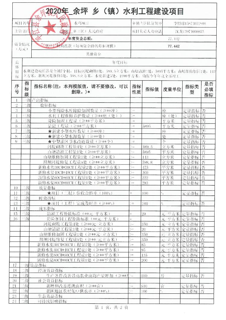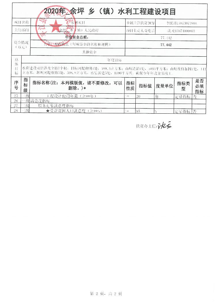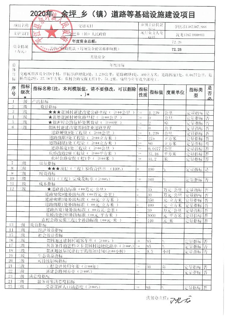 2020年余坪镇扶贫项目绩效申报