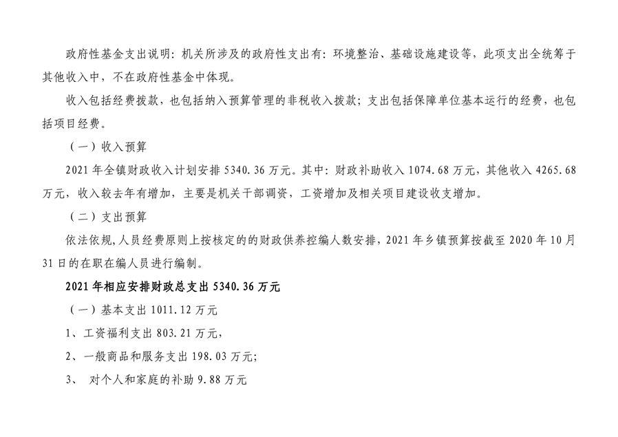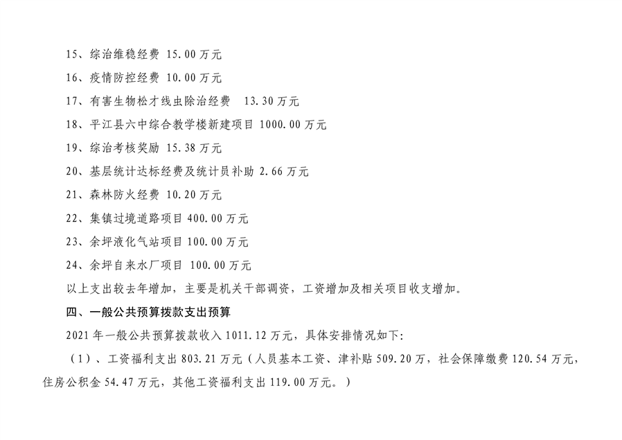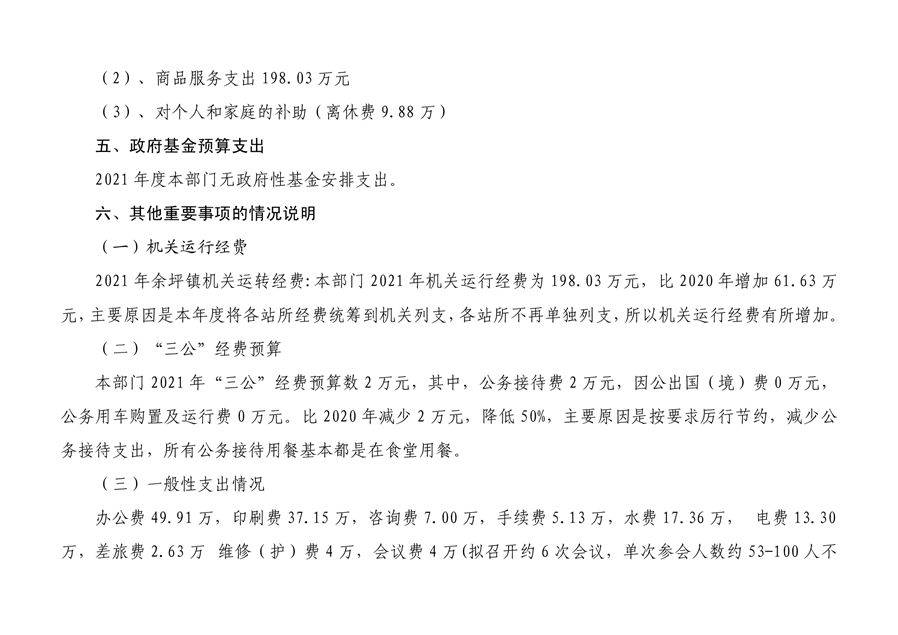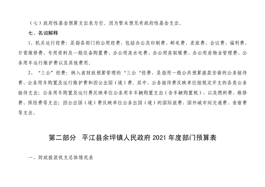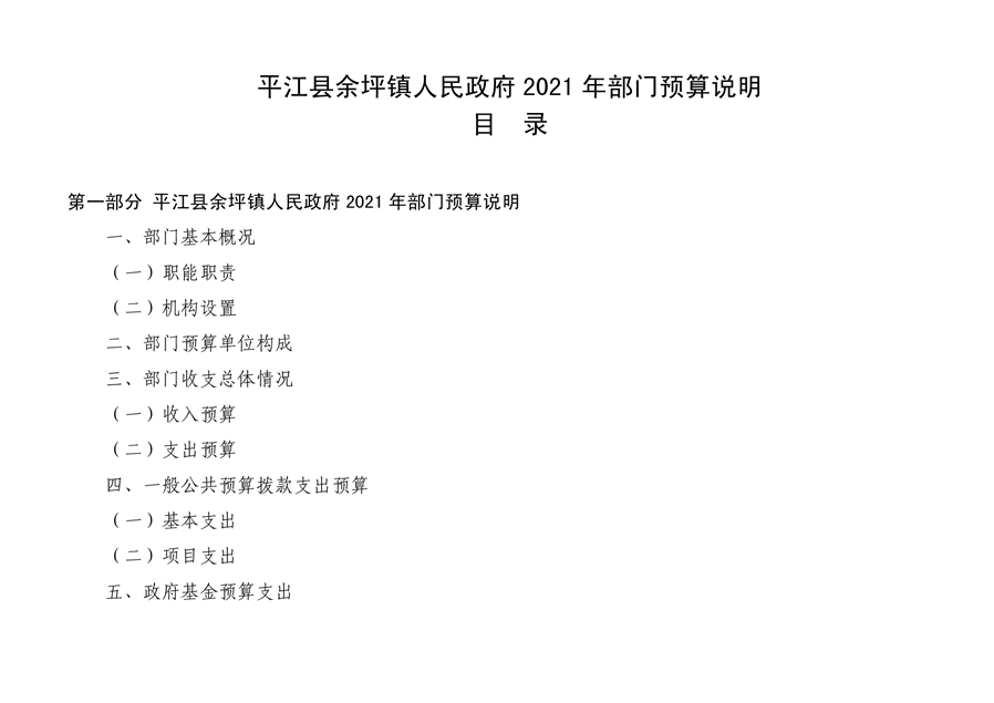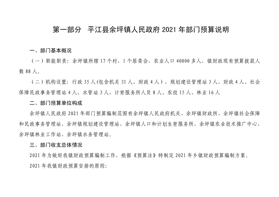 平江县余坪镇人民政府 2021 年部门预算编报说明