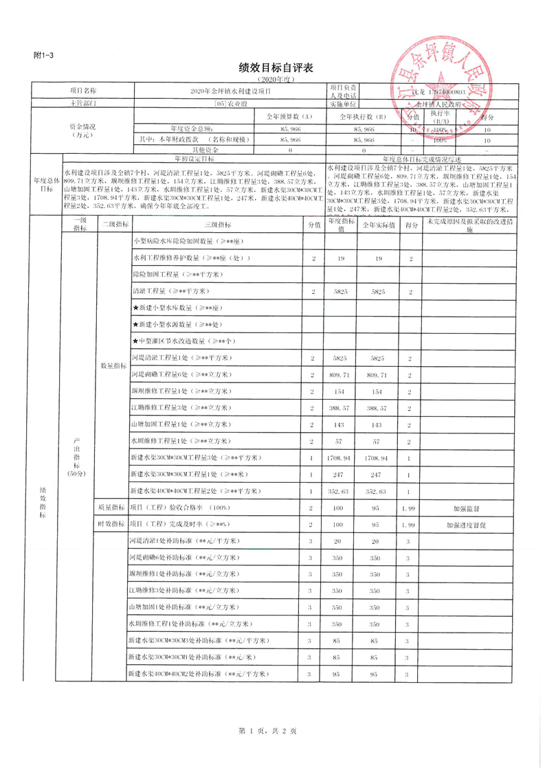 余坪镇人民政府2020年统筹整合涉农资金项目库绩效自评