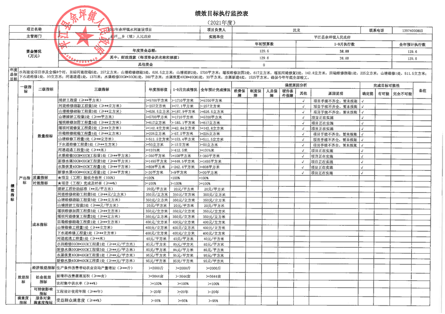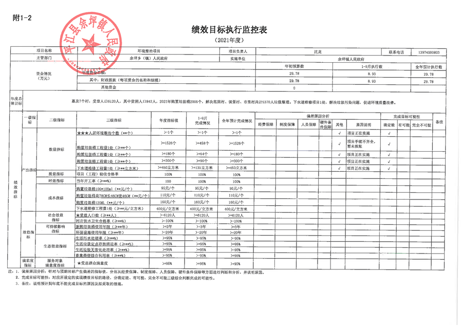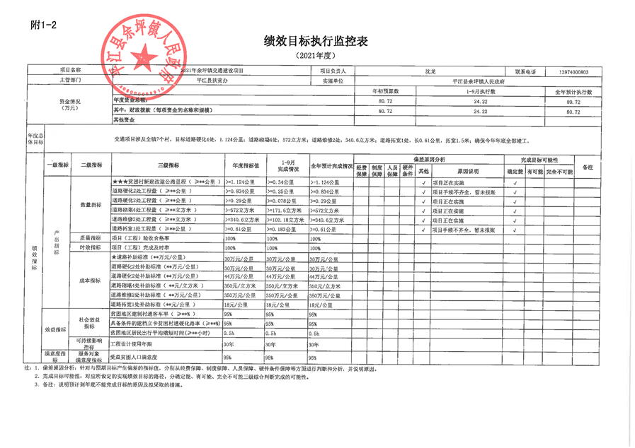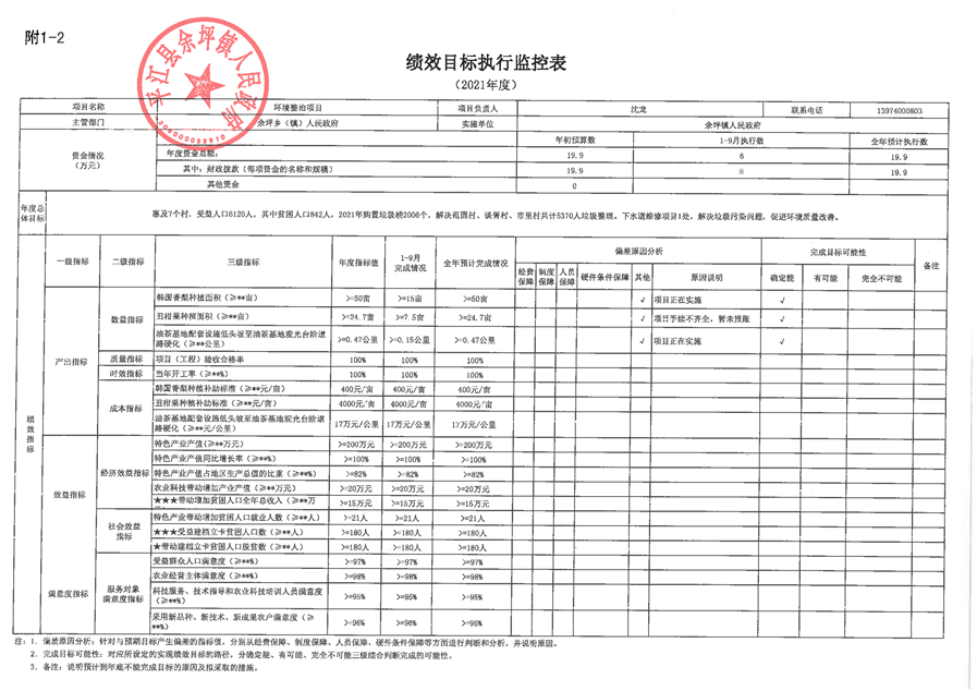 余坪镇2021年统筹整合涉农资金项目建设绩效监控表