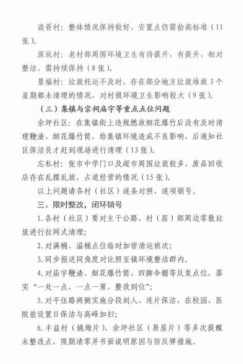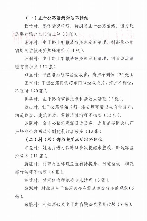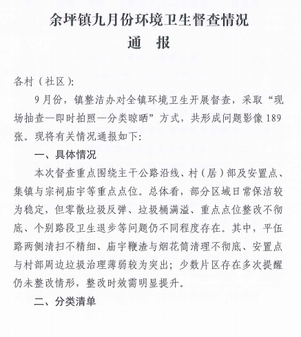余坪镇九月份环境卫生督查情况通报