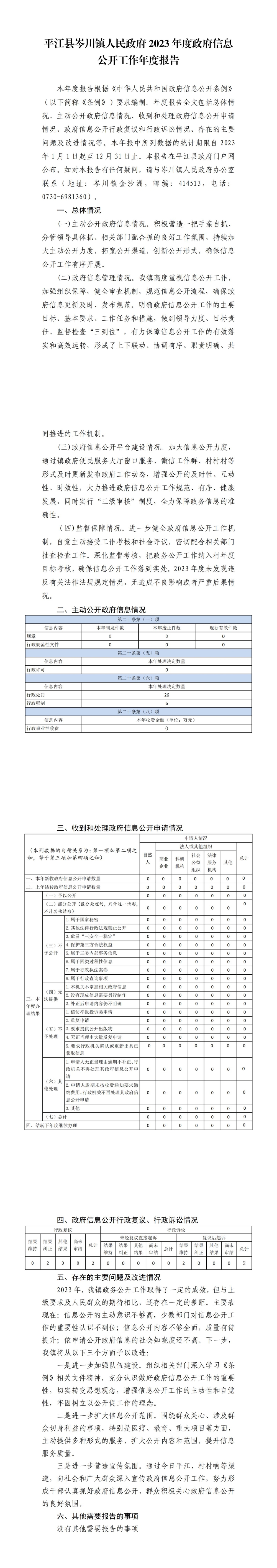 平江县岑川镇人民政府2023年度政府信息公开工作年度报告