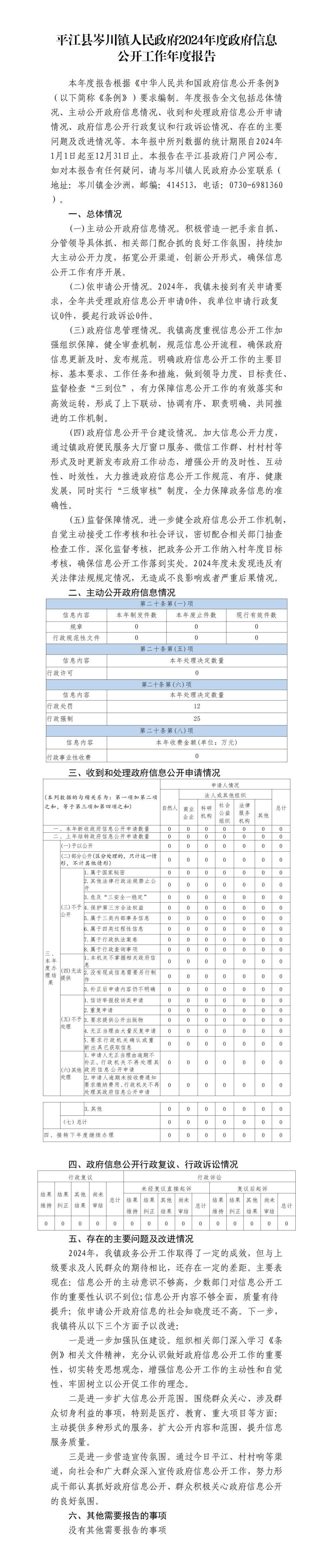 平江县岑川镇人民政府2024年度政府信息公开工作年度报告