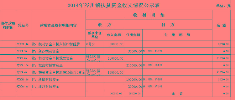 2014年,岑川镇财政扶贫资金36万已全额下拨。