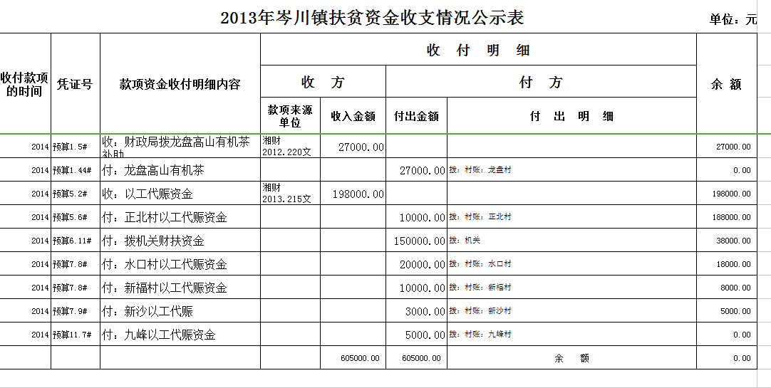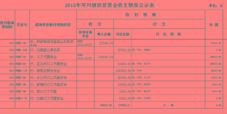 2013年,岑川镇财政扶贫资金60.5万已全额下拨。