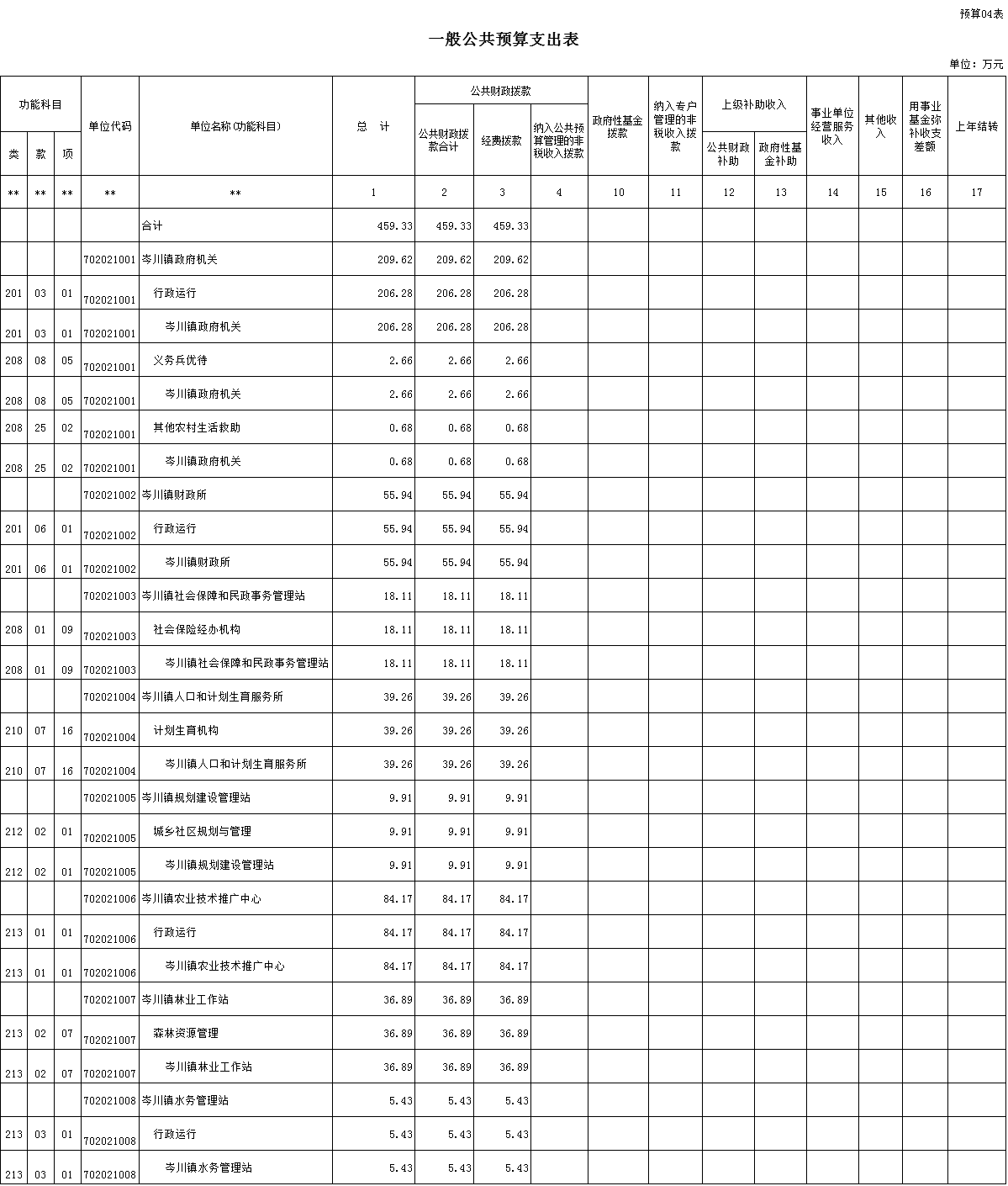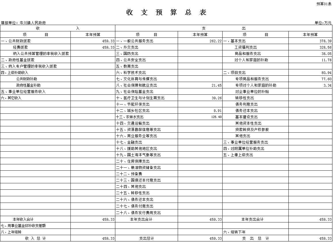 2016年预算收入459.33万元,2016年财政预算支出459.33万元,