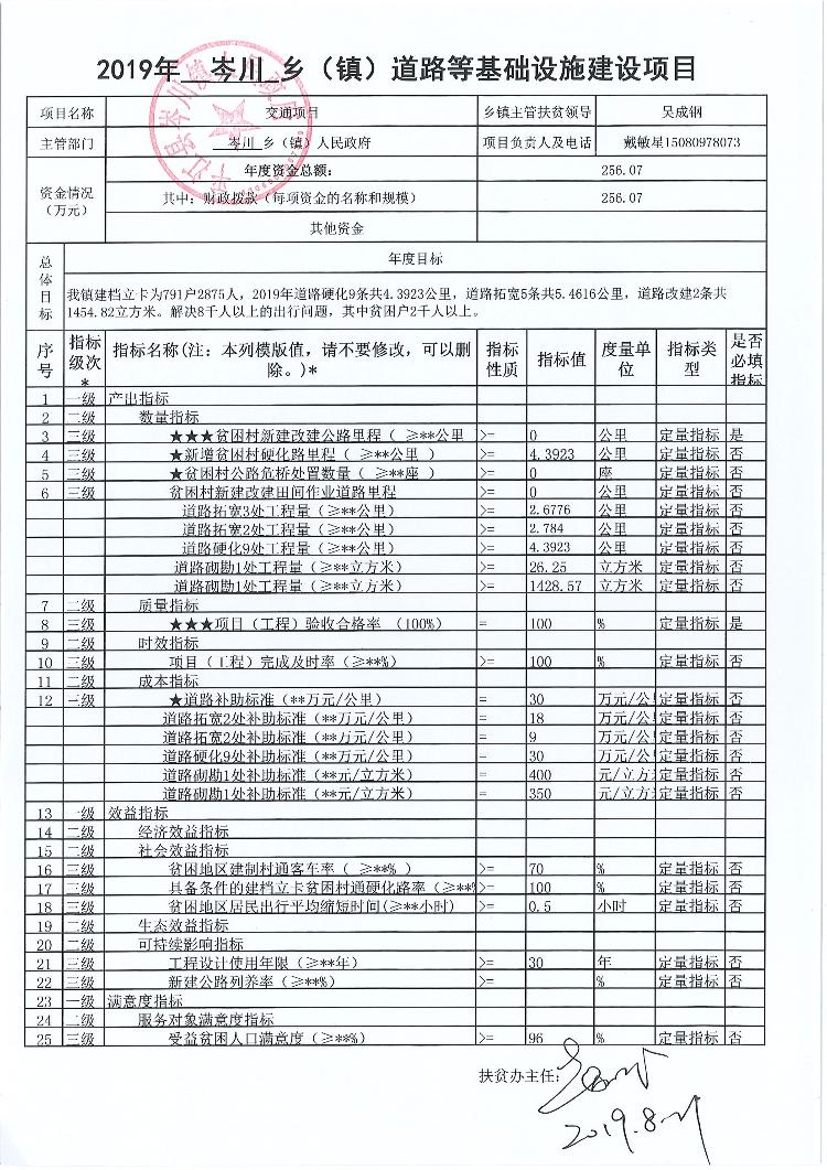 岑川镇2019统筹整合涉农资金项目库预算绩效申报