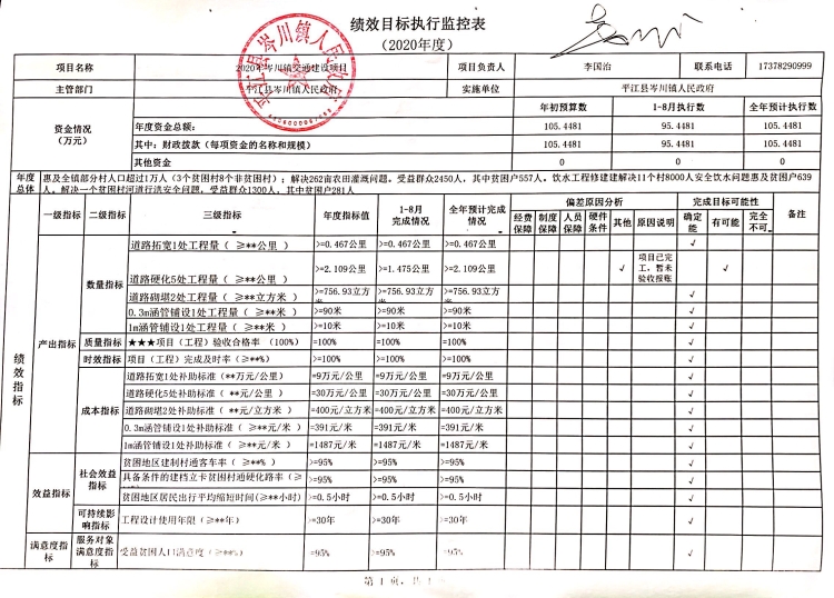 岑川镇2020年统筹整合涉农资金项目库预算绩效监控