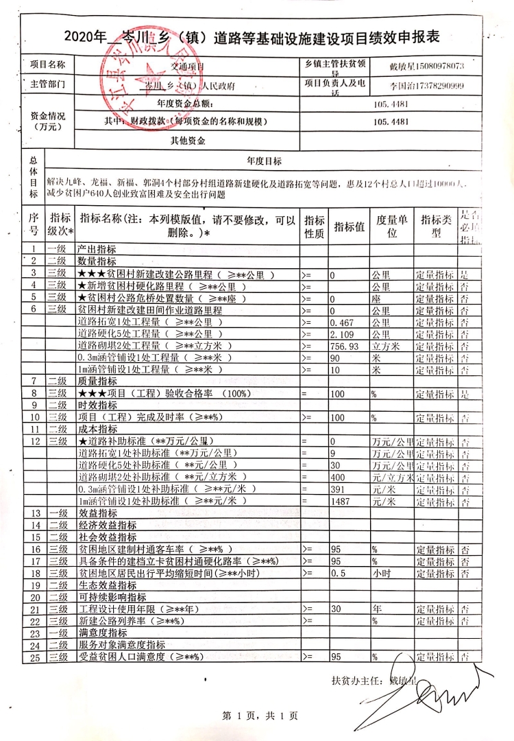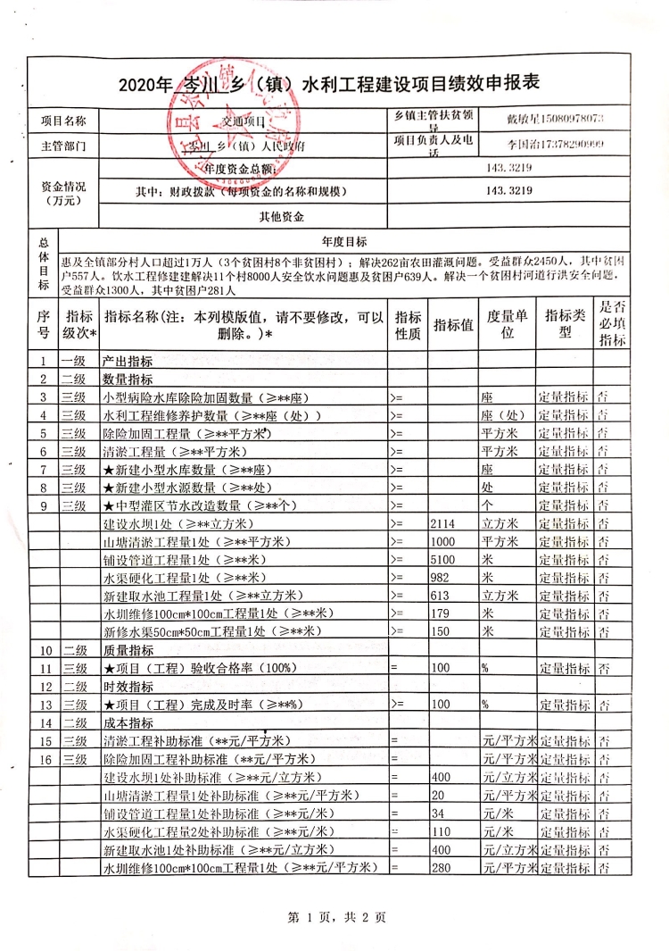 岑川镇2020年统筹整合涉农资金项目库预算绩效申报(调整)