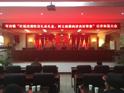 11月21日,岑川镇召开“杜绝违规收送礼品礼金,树立崇廉尚洁良好形象”公开承诺大会,全体机关干部、村干部、部门负责人参与会议。