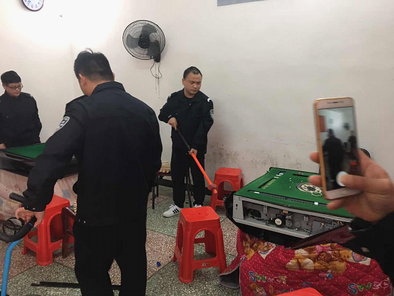 随着三阳乡应急大队队长向超的一声令下,南源村麻将馆内四台麻将机瞬时被销毁。