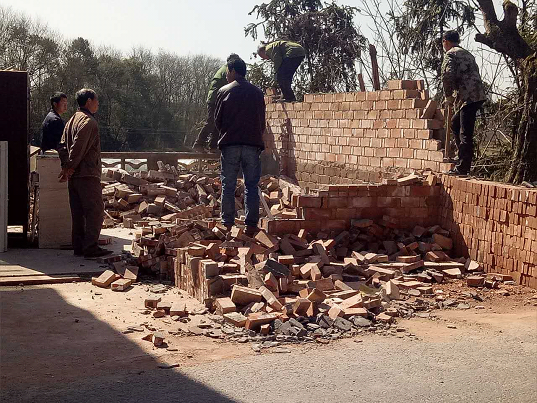 2月27日,三阳乡建管站工作人员在巡查中发现黛屏源村有一处违章建房,当即上门对户主下达了整改通知,并与该村村支书、村主任及规划员一道,对户主讲清该房屋属于违建的原因,阐明依规建设的意义、违规建设的危害和影响,让他充分认识到拆除违建的必要性。经过耐心细致的沟通,当事人同意配合拆除。