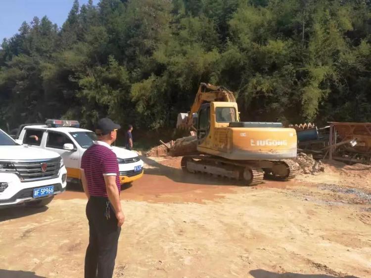 当天,联合执法组首先来到更新村,各成员单位严格按照行动要求,各就其位,各负其责,将现场警戒、群众疏导、电源切断、应急处置等落实到位,在技术人员对洗砂设备进行专业切割后,大型挖机将相关设备及建筑物拆除并平整场地。随后,又马不停蹄赶到甲山村,督促指导业主自行将该村2家非法洗砂场的作业设备安全拆除。