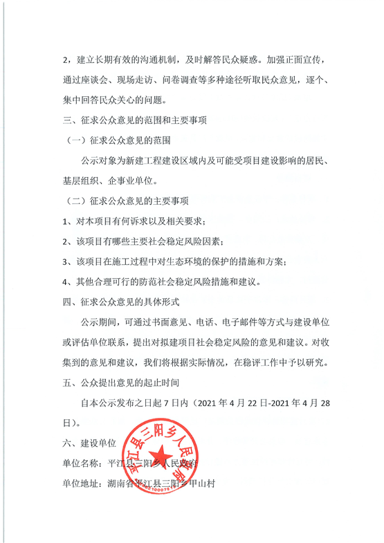 平江县三阳乡黄金矿业转型绿色发展改革项目社会稳定风险评估公众参与信息公示