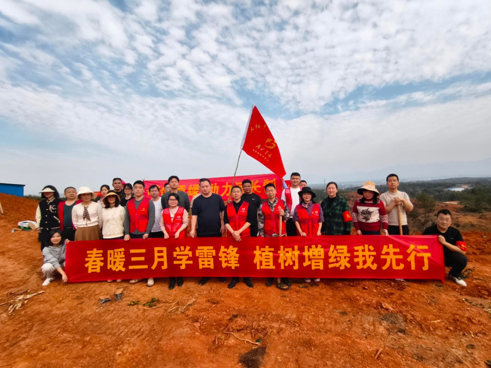 挥锹铲土、扶苗填坑、脚踩压实、提水浇灌……植树现场,大家三两成组、分工协作,干劲十足,在春光中奏响了绿色的交响曲。经过2个小时的共同努力,共种植各类树苗300余株,放眼望去,一棵棵树苗昂首挺立,在春风中展现出勃勃生机。此次植树活动,不仅为春光明媚的三月增添了一抹盎然的绿意,更种下了大家对绿色美好环境的憧憬和希望。