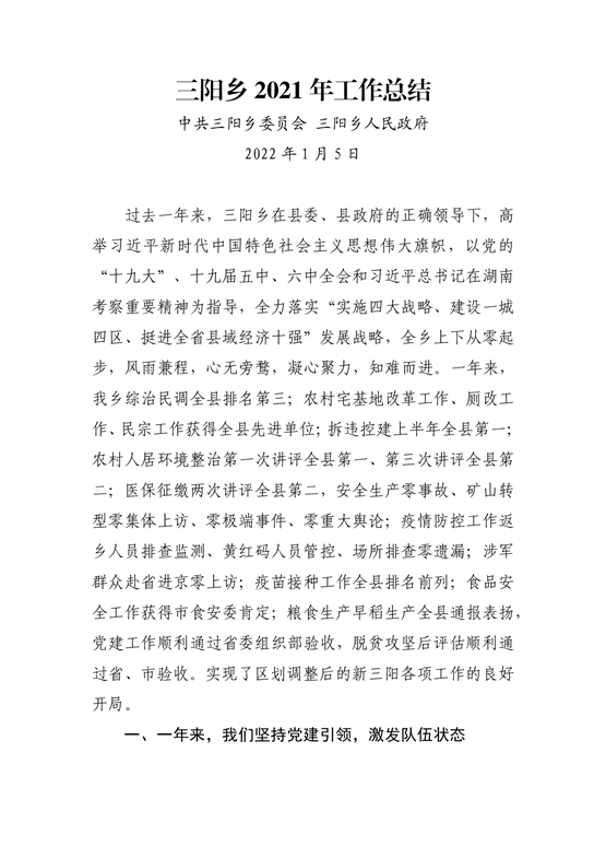 三阳乡2021年工作总结