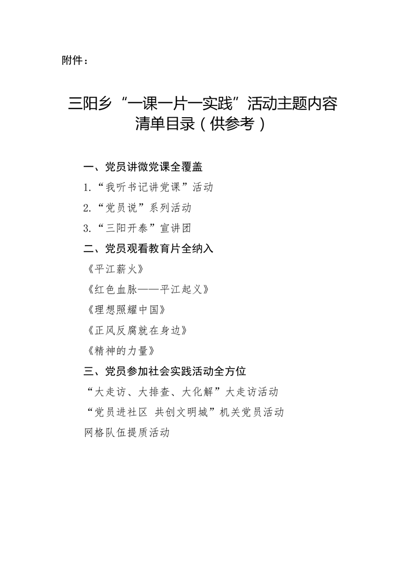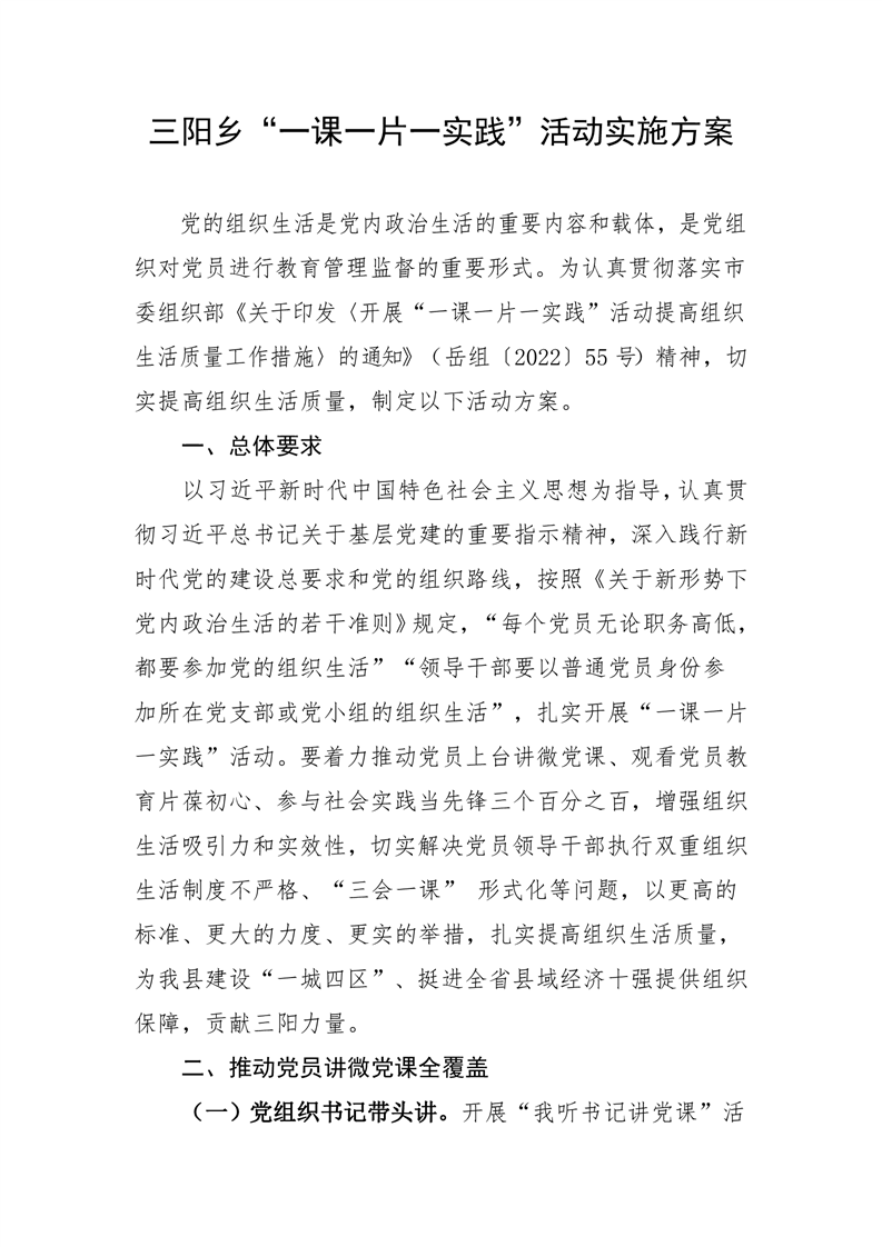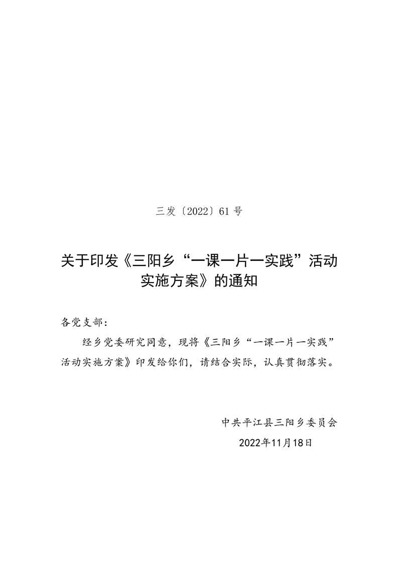 三阳乡“一课一片一实践”活动实施方案